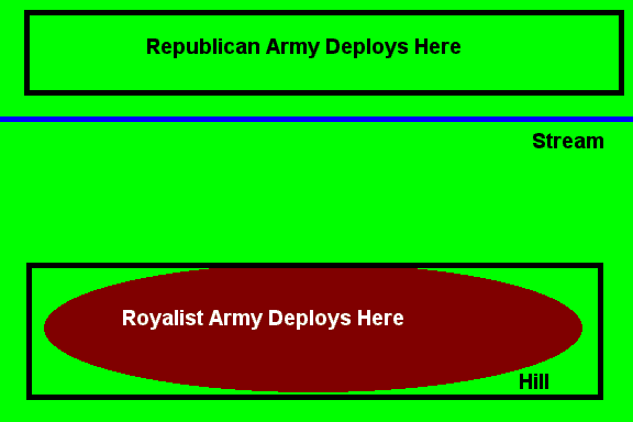 Deployment: Republican and Royalist forces deploy as shown on the map. No unit can start closer than 18" from the enemy.
