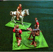 The Armies: The figures used were 1/72 scale plastics mounted two per stand, a mix from several sets (Italieri and Hat, with Celtic cavalry substituted for the Carthaginian cavalry). Skirmishers were arranged in single rank lines (3-5 stands), formed infantry and cavalry were in double rank lines (6-10 stands). Elephants and Scorpions were single stand units. Skirmishers and Elephants should be deployed in the front line. Here are some paper soldiers you can print and use.