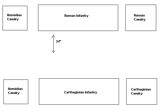 Romans: Scipio (Commander in Chief) 4 Infantry Commands each with: Roman Cavalry (left flank) Numidian Cavalry (right flank) |