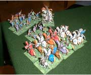 Deployment: The English deploy at one table end. The French deploy at the opposite end and must be at least 24" from the English. They should be in three lines. The mounted knights units in the first line should be on the left and right wings.