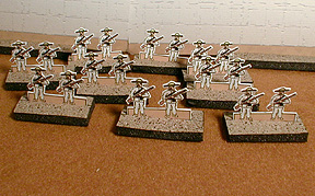 Mexican Forces 5 Units (9 bases each) These should be dismounted cavalry for the first few waves, and militia for the succeeding waves, although they are all treated alike in the rules. |