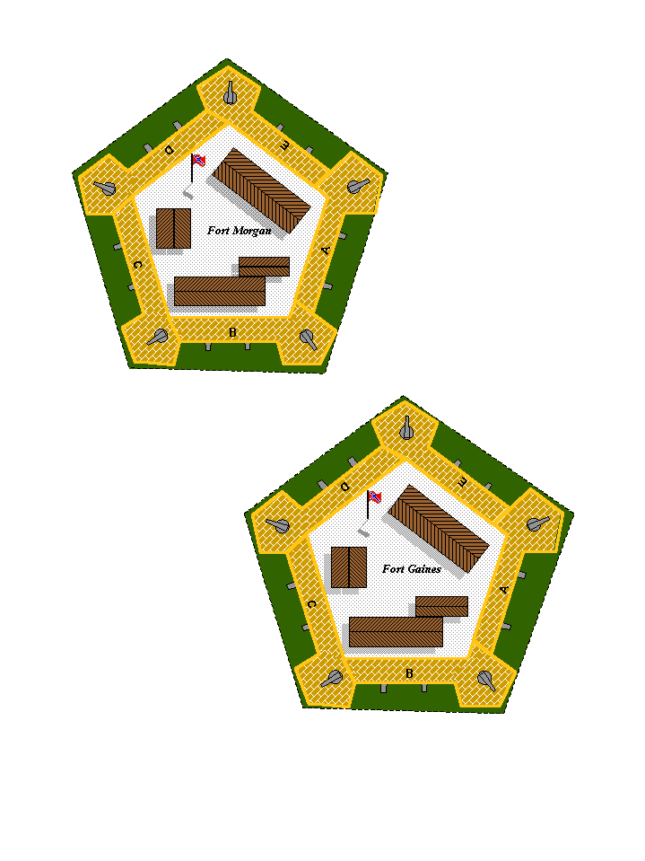 the bay were Forts Morgan and Gaines, natural and manmade obstructions,
