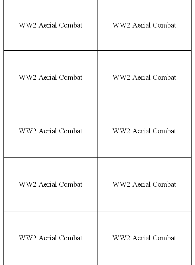 Pilot Licenses: The pilot license is a sheet, about the size of an index card, where the students can record the damage to their planes and record their victories. They were designed to resemble baseball cards, with the name and picture of a WW II ace, his victory total, and a brief biographical blurb. The sites used in creating the licenses are listed in the resources section at the end of this page. The two most useful sites were Aces of WW II and WW II Ace Stories. I laminated the pilot licenses so they could be marked with dry erase markers. They should be printed in landscape mode. You can download the pilot license cards as MS Word files: USpilots.doc (214 kb), Germanpilots.doc (192 kb), Sovietpilots.doc (126 kb), Japanpilots.doc (64 kb), RAFpilots.doc (188 kb) or as separate GIF files