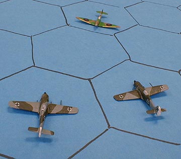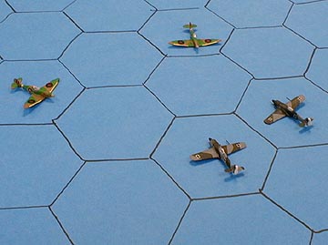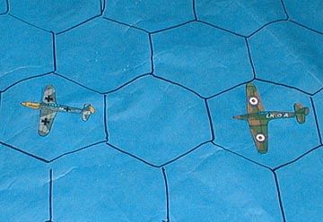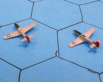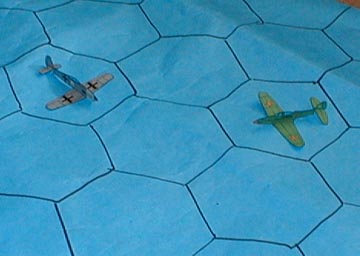 Planes in the Same Hex: Sometimes two planes will end up in the same hex. Planes in the same hex MAY NOT shoot at each other, they are assumed to be flying at different altitudes. Do your best to put both planes in the hex without losing track of their facing. The problem will resolve itself when the planes make their next move.