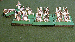 The Woods: During the battle the commanders used their militia, native warriors, and light infantry for skirmishing in the woods. If units of this type are in the woods and are shot at by an enemy unit outside the woods they get saving throws. Roll 1D6 for each hit, ignore the hit if the saving roll is a 4 - 6. There are no saves against fire from within the woods. Cannons and cavalry are not allowed into the woods. Regular infantry may not use column formation in the woods.