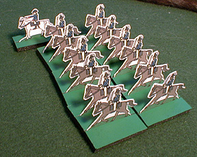 Infantry and cavalry are mounted two per base. Cavalry bases are