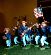 Shooting: Everything is always in range. Spanish roll 1D6 per figure. A roll of 5 pins one figure, a 6 eliminates a figure. Americans need a 6 to hit, and half the hits (round up) will be pins, the rest will be kills.