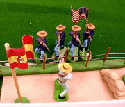 Artillery: Each turn the Spanish player may toss three cotton balls onto the table to represent artillery fire. He should be standing at least one foot behind his table edge when he tosses the cotton. Any figures within 3" of a cotton ball are potential casualties. Roll 1D6 for each figure: 1-3 stun, 4 - 6 kill.