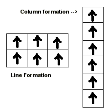 Movement: Units in line formation move 6", units in column formation move 12". Cannons may move 6" but cannot fire on the turn that they moved. Cannons can pivot in place and still fire, however. During movement units may not move closer than an 1" to enemy units.